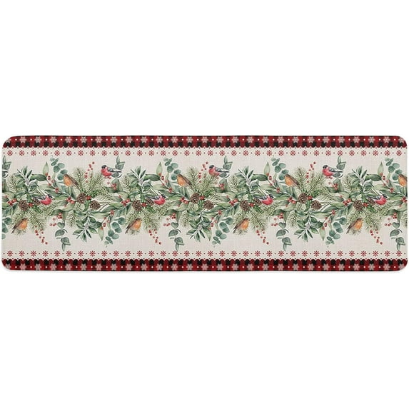 Kitchen Mat Rug 1 PCS Christmas Bird Poinsettia Pine Cone Red Plaid Linen Runner Rug Anti-Fatigue Comfort Memory Foam Standing Mat Non-Slip Floor Door Mat for Bathroom Bedroom 16x47in $28.99