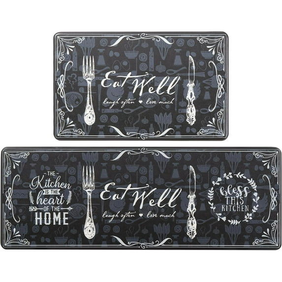 Kitchen Mats for Floor, Anti Fatigue Comfort Kitchen Standing Desk Mat, Floor Pad Kitchen Rug Waterproof Stain Resistance Non Slip Kitchen Set of 2, 17.3''''x27.6''''+17.3''''x47.2'''', Eat WellKitchen Mats Floor Anti Fatigue Comfort Kitchen Standing Desk Mat Floor Pad Kitchen Rug Waterproof Stain Resistance Non Slip Kitchen Set 2 17 3 x27 6Kitchen Mats Floor 2PCS Kitchen Rugs Anti Fatigue Comfort Kitchen Standing Desk Mat Kitchen Rugs Sets 2 Non Slip Washable 17 3 x27 6 17 3 x47 2 Grey