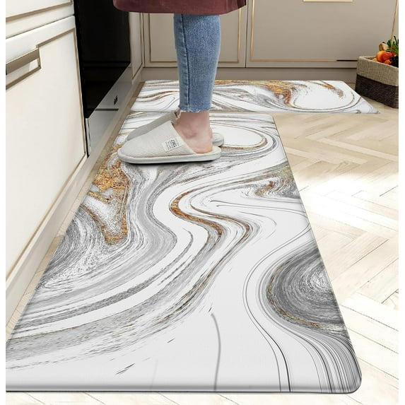 Hero image 0 of Kitchen Mats for Floor Anti Fatigue Mats For Kitchen Floor Marble Kitchen Mat Cushioned Memory Foam Non Slip PVC Leather Padded Comfort Standing Kitchen Rugs Set Of 2, Abstract Golden Swirl Design, C4, 0 of 6