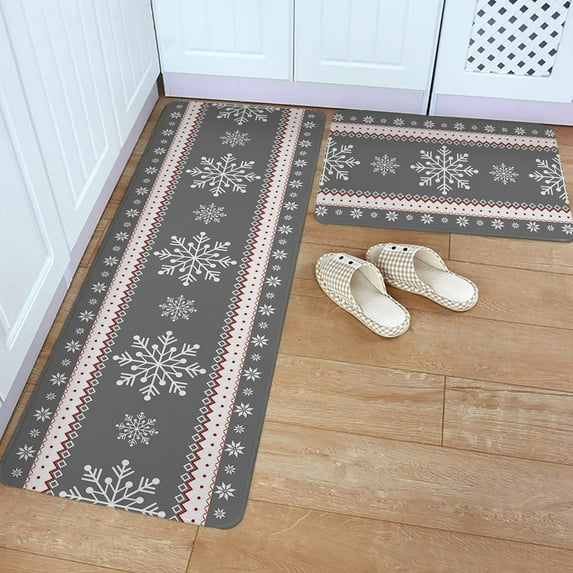 Kitchen Rug Mat Christmas Snowflake, Set of 2, Anti-Fatigue Non-Skid Washable Kitchen Runner Rugs, Winter Grey Soft Comfort Rug for Kitchen, Floor Home, Front of Sink, Laundry