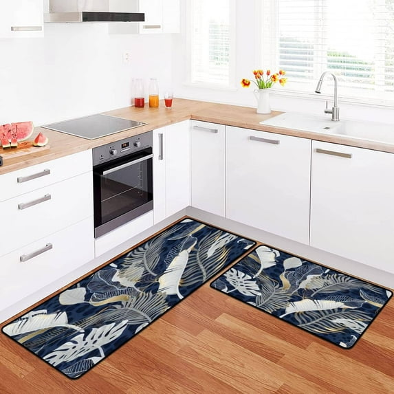 Hero image 0 of Kitchen Rugs Set Seamless with White Tropical Leaves with Gold Elements on Blue Kitchen Mat for Floor Non-Slip Washable Kitchen Runner Doormat Bath Rug Carpet Comfort Standing Mats Decorations, 0 of 6
