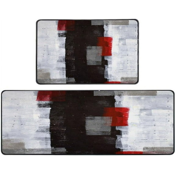 Hero image 0 of Kitchen Rugs Sets 17"x48"+17"x30" Area Rugs Red and Grey Abstract Art Painting Red Kitchen Rugs Non Skid Washable Decorative Kitchen Mats Set of 2 for Kitchen Dining Room Floor Sink Laundry, 0 of 5