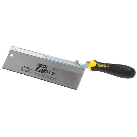 Stanley FatMax Flush Cut Reversing Backsaw 10". Reversible blade for left or right handed cuts. Ideal for finish carpenters, flooring professionals and wood working enthusiasts. Push button allows for left or right handed operation. It has ergonomic, bi-material handle and offset handle helps to protect knuckles. Induction hardened teeth for long life.