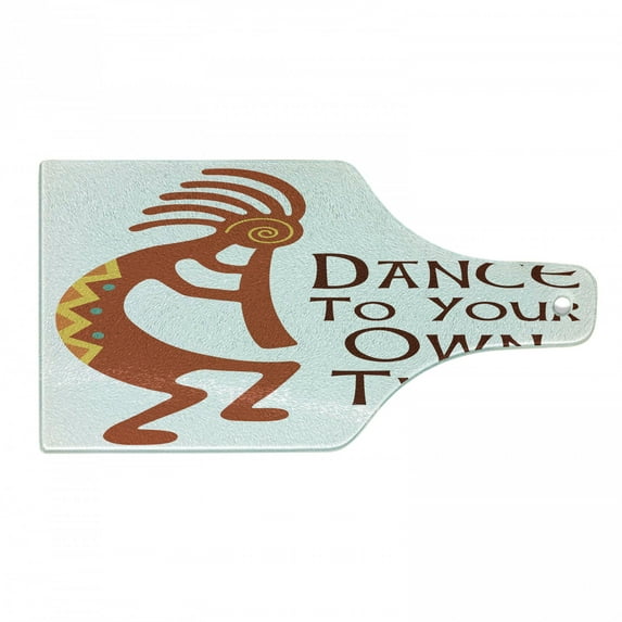 Kokopelli Cutting Board, Abundance Fertility Tribal Cultural Persona Shepherds Pipe, Decorative Tempered Glass Cutting and Serving Board, in 3 Sizes, by Ambesonne