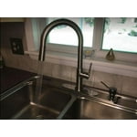 [This review was collected as part of a promotion.] The Kraus Commercial Style 2-Function Single Handle Pull Down Kitchen Faucet is not only sleek but also a must have for your kitchen! The faucet is perfectly sized to fit most sinks and the pull down sprayer offers maximum maneuverability, with an easy-retract hose and swivel adapter that enables a full range of motion so you can reach all around the sink. Installation is a breeze with pre-attached water lines, quick connect hose, counterweight, and mounting hardware. ADA-compliant and water saving aerator.