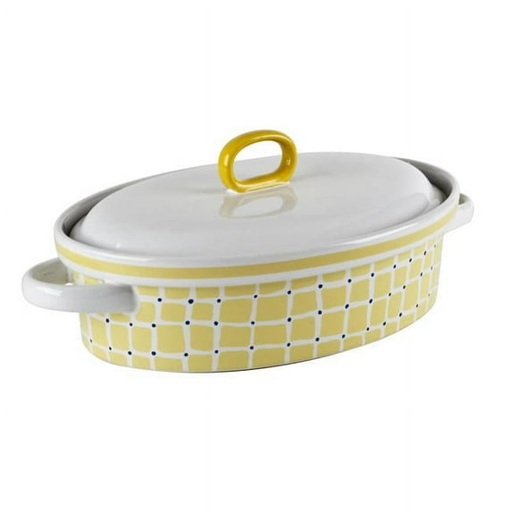 Kris Ruff 33385 Square & Dots Oval Casserole - Yellow