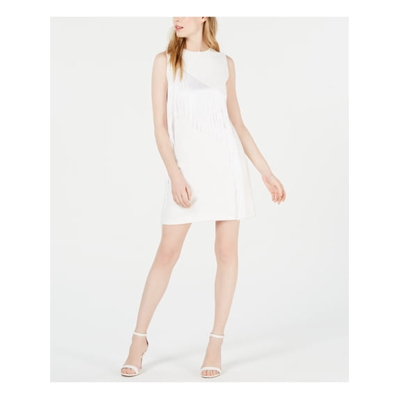 Hero image 0 of LAUNDRY Womens White Fringed Sleeveless Jewel Neck Short Party Sheath Dress 2, 0 of 4