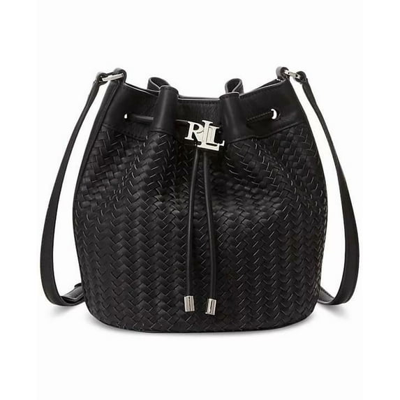 LAUREN Ralph Lauren Andie Woven Leather Small Drawstring Bag Purse Black Rt $425