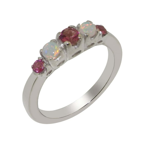 Hero image 0 of LBG British Made 10k White Gold Natural Pink Tourmaline & Opal Womens band Ring - 33 size options - Size 5, 0 of 6