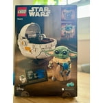 - Display Features: The set features a buildable Grogu figure, his hover pram, and an information plaque, complemented by a standard-size Grogu LEGO figure in a small buildable hover pram.