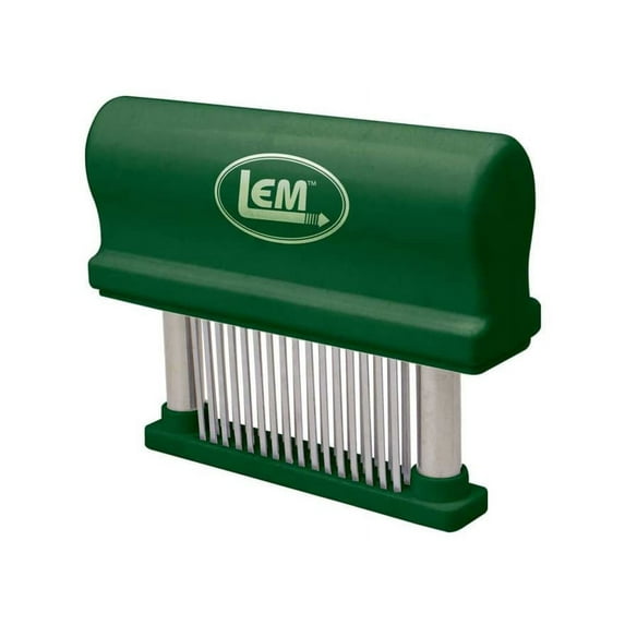 LEM's Hand Held Tenderizer with 48 Blades make it quick and easy to create tender meat from tough cuts. Each of the stainless saber blades tenderize to perfection, working quickly to cut down on the loss of natural juices. Great for wild game, beef, pork, veal, lamb, and chicken. When used before marinating, the meat will drink in the marinade more freely. Use tenderizer with cutting board. Dishwasher safe on top shelf only.