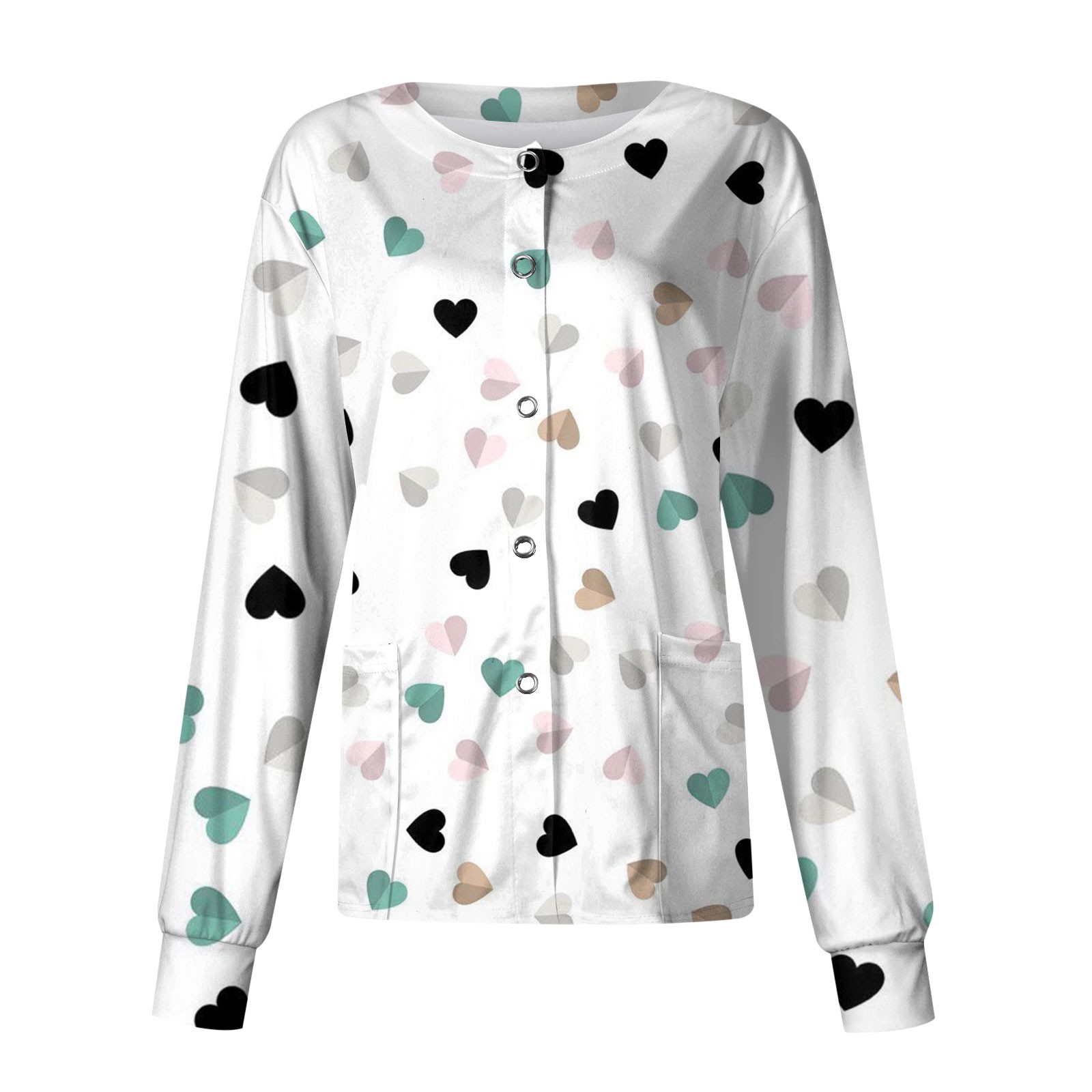 Hero image 0 of LHVUOA Valentine Day Trendy Jackets for Women Long Sleeve Snap Front Valentine Love Printed Nursing Uniform Shirts with Pockets, 0 of 3