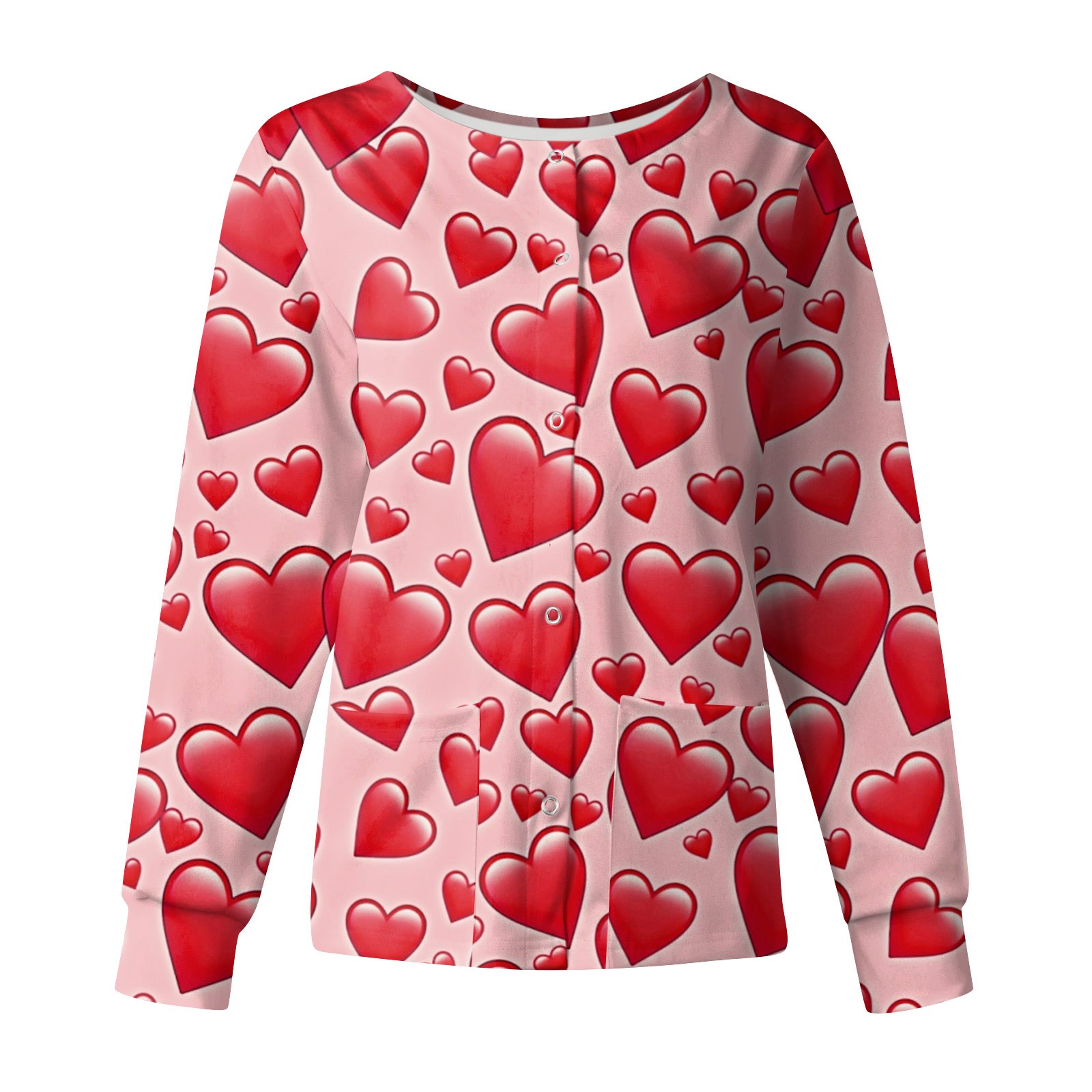 Hero image 0 of LHVUOA Valentines Day Womens Warm Up Scrubs Jacket Funny Love Heart Printed Working Jacket Nurse Uniforms Workwear Tops with Pockets, 0 of 3
