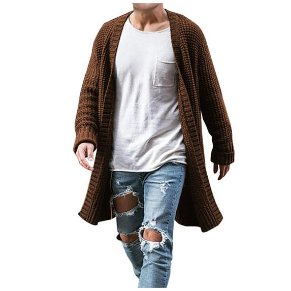 Hero image 0 of LISTHA Mens Long Cardigan Knit Ruffle Fashion Fall Winter Sweater Drape Cape Brown 2XL, 0 of 5