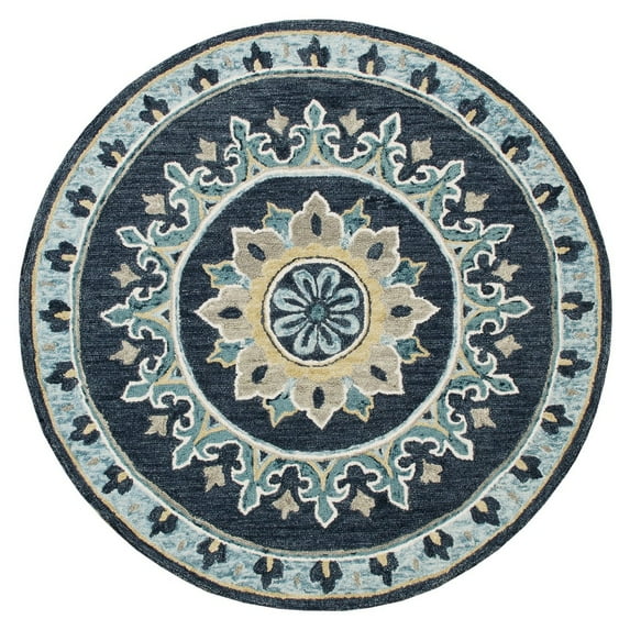 LR Home Wren 5' Round Blue Medallion Indoor Area Rug