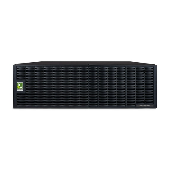 The CyberPower BP240VL3U01 rack/tower convertible Extended Battery Module (EBM) extends UPS runtimes during power outages. Designed for select Smart App Online UPS systems, this EBM takes 3U of rack space and can be installed in a rack or tower configuration to match the UPS form factor. It also has a built-in battery charger, providing Fast Charge Technology to quickly restore the backup power supply from 0-90% in four hours. Up to ten EBMs can be connected in a daisy-chain to the UPS. The BP240VL3U01 typically has a UPS charging time of four hours regardless of whether one or ten EBMs are installed when Fast Charge is connected. With a three-year warranty, you can trust CyberPower's commitment to the quality of the BP240VL3U01.Extended Battery ModuleExtends runtime and restores full backup power quickly with Fast Charge Technology.Hot-Swappable BatteriesCan be replaced without powering down vital equipment.Fast Charge TechnologyUses a built-in battery charger in each EBM for quick charging, regardless of the number of EBMs attached to a UPS.Smart Battery ManagementUses the UPS three-cycle charging mode that improves battery life and reduces generated heat.Plug-and-Play DC ConnectorsAllows for daisy-chaining additional EBMs to a UPS system.Resettable AC Fast Charge Circuit BreakerResets the EBM swiftly in case of an overload.Rack/Tower ConfigurationAllows for horizontal rackmount or vertical tower installation.