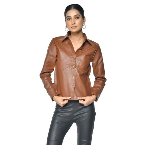 Hero image 0 of Ladies Leather Shirt in Cognac, 0 of 11