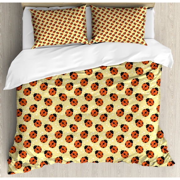 Ladybugs Duvet Cover Set Queen Size, Cute Bugs Children Cartoon Style Stars Polka Dots Nature Inspirations, Decorative 3 Piece Bedding Set with 2 Pillow Shams, Mustard Vermilion Black, by AmbesonneLadybugs Duvet Cover Set Queen Size Cute Bugs Children Cartoon Style Stars Polka Dots Nature Inspirations Decorative 3 Piece Bedding 2 Pillow Shams MLadybugs Duvet Cover Set King Size Cute Bugs Children Cartoon Style Stars Polka Dots Nature Inspirations Decorative 3 Piece Bedding 2 Pillow Shams MuLadybugs Duvet Cover Set Twin Size Cute Bugs Children Cartoon Style Stars Polka Dots Nature Inspirations Decorative 2 Piece Bedding Set 1 Pillow Sham