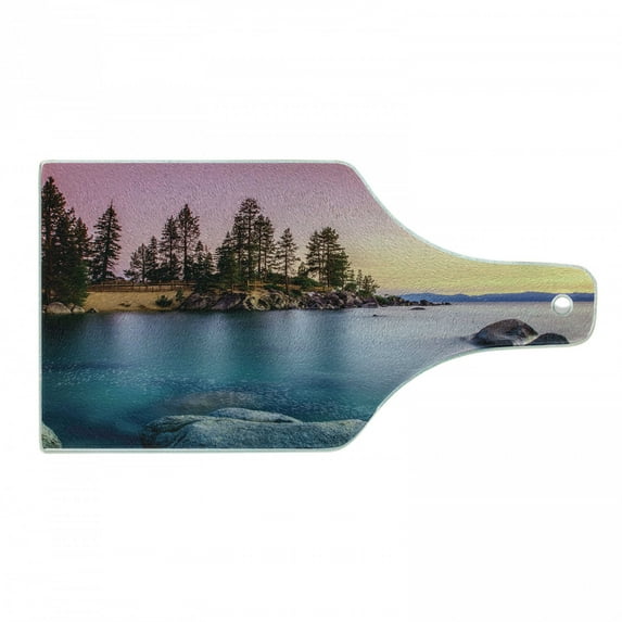 Hero image 0 of Lake Cutting Board, Trees on the Alley and Stones in the Lake Nature Inspired Tranquil Serene, Decorative Tempered Glass Cutting and Serving Board, Wine Bottle Shape, Pink Blue, by Ambesonne, 0 of 1