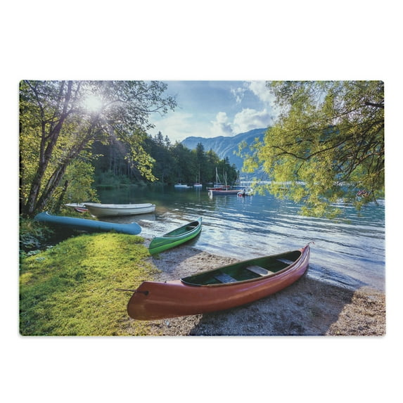 Hero image 0 of Landscape Cutting Board, Bohinj Lake with Boats Canoes Triglav National Park Julian Alps Slovenia Print, Decorative Tempered Glass Cutting and Serving Board, Large Size, Multicolor, by Ambesonne, 0 of 1