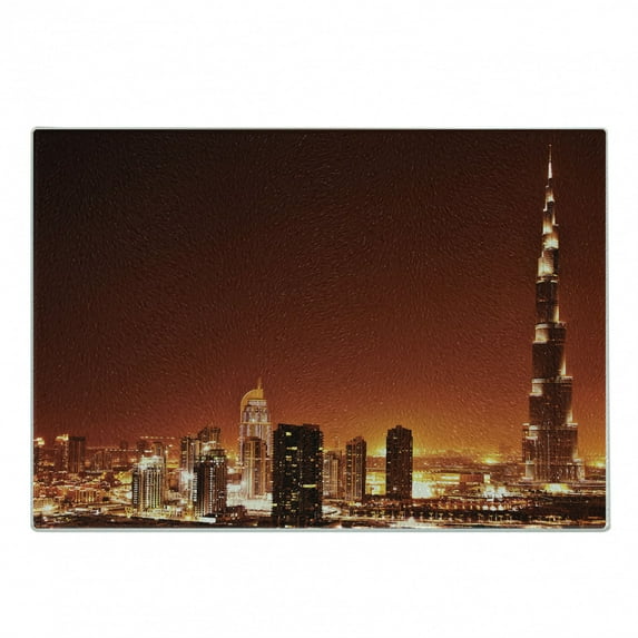 Hero image 0 of Landscape Cutting Board, Dubai Downtown with Cityscape Skyscrapers Sunset Middle East City Photo, Decorative Tempered Glass Cutting and Serving Board, Small Size, Multicolor, by Ambesonne, 0 of 1