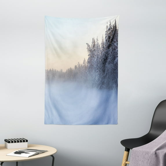 Hero image 0 of Landscape Tapestry, Frozen Winter Lake River in Woods Trees under the Snow Nature Forest Artful, Wall Hanging for Bedroom Living Room Dorm Decor, 40W X 60L Inches, White Green, by Ambesonne, 0 of 1