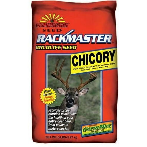 Rackmaster Chicory Type: Cool season perennial Uses: Rackmaster Choice Chicory is a new variety of perennial chicory developed by New Zealand breeders for the United States. Choice is a great name because this chicory produces high quality, high protein, high yielding choice forage for deer and other wildlife. Choice has been selected for its high yields, improved cool season growth and improved persistence. Choice can produce up to 6 tons of dry matter forage per acre per year with protein levels of up to 32% and digestibility of the new leaves up to 90 to 95%. Through its deep taproot, Choice Chicory has the ability to make minerals more available in its leaves compared to other types of forage. Increased potassium, calcium, magnesium, sulfur, zinc and sodium make Choice Chicory leaves irresistible to whitetail deer. Choice Chicory is a highly preferred, grazing tolerant plant that has good drought resistance. Planting Date: Sept. - Oct. fall planting, Feb. - Apr. spring planting Rate: 5 lbs./acre or 1/8 lb./1000 sq.ft. Depth: 1/4" maximum Best For: Deer, Turkey, and Rabbit