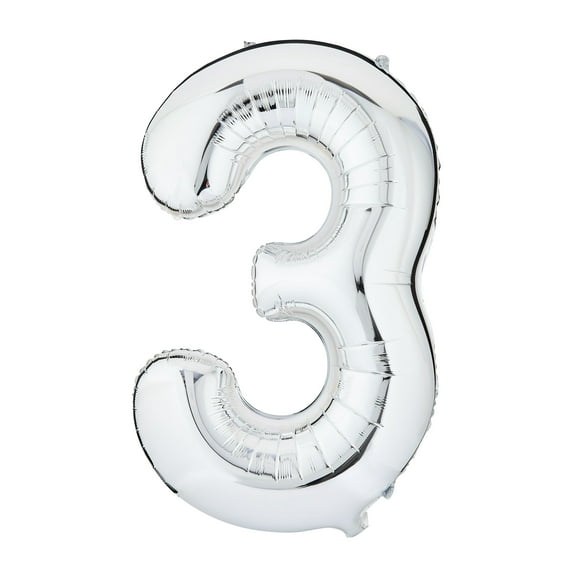 34" Silver Number 3 Foil Balloon, by Way To Celebrate