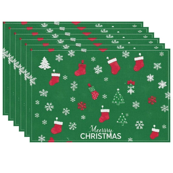Christmas-themed Placemats Heat-Resistant Cartoon Christmas Elements Outdoor Doormat Durable Cute Stockings Winter Modern Christmas Decor, for Home Deco 6PCS 17.7" X 13"