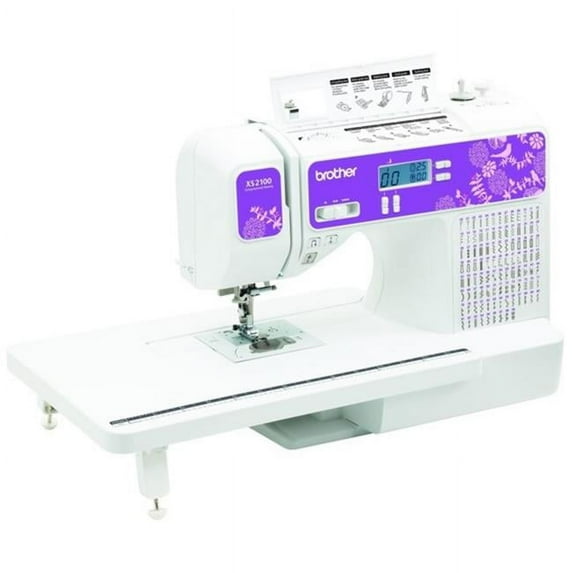 - Packed with features and accessories, the XS2100 features 100 unique built-in stitches, including 8 styles of 1-step buttonholes. Enjoy the versatility of the 11 accessory sewing and quilting feet, including a walking foot, a " piecing foot for quilting, a spring action quilting foot, an overcasting foot, a blind stitch foot and other specialty feet. The XS2100 also features drop feed dogs and a wide table for greater sewing flexibility and project possibilities. Designed for ease of use, the XS2100 includes a large, backlit LCD display for easy viewing, an advanced needle threading system, adjustable speed control, and the Brother exclusive jam resistant, Quick-Set top drop-in bobbin.