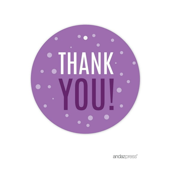 Lavender, Plum, Royal Purple Girl's Sweet 15 Birthday Party, Round Circle Gift Tags, Thank You!, 24-Pack