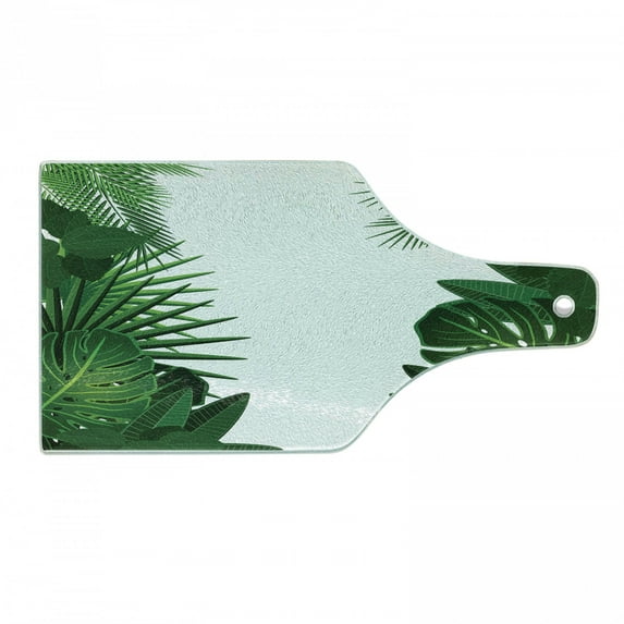 Hero image 0 of Leaf Cutting Board, Exotic Fantasy Hawaiian Tropical Palm Leaves Floral Graphic Art Print, Decorative Tempered Glass Cutting and Serving Board, Wine Bottle Shape, Green White, by Ambesonne, 0 of 1