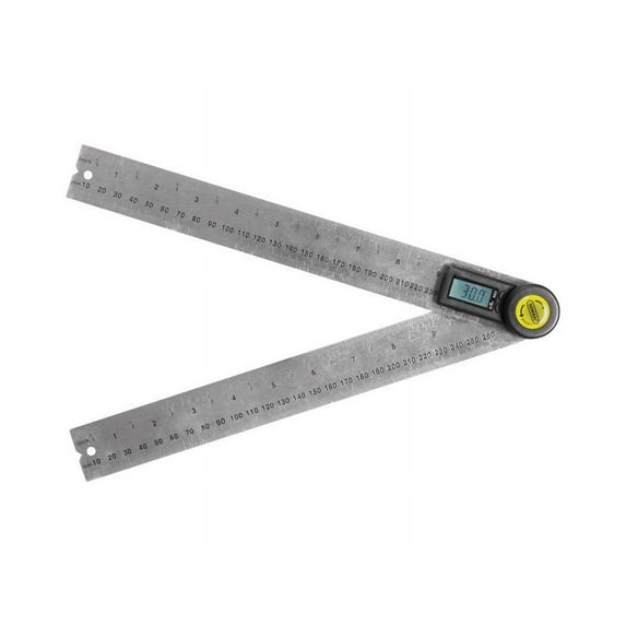 The 10" Digital Angle Finder with Rules from General Tools calculates the inside and outside angles easily and accurately in seconds. Features lock and reverse angle as well as a large easy-to-read LCD display. The hinge mechanism allows a full 360 degree inside/outside and reverse angle measurements. Comes with battery.