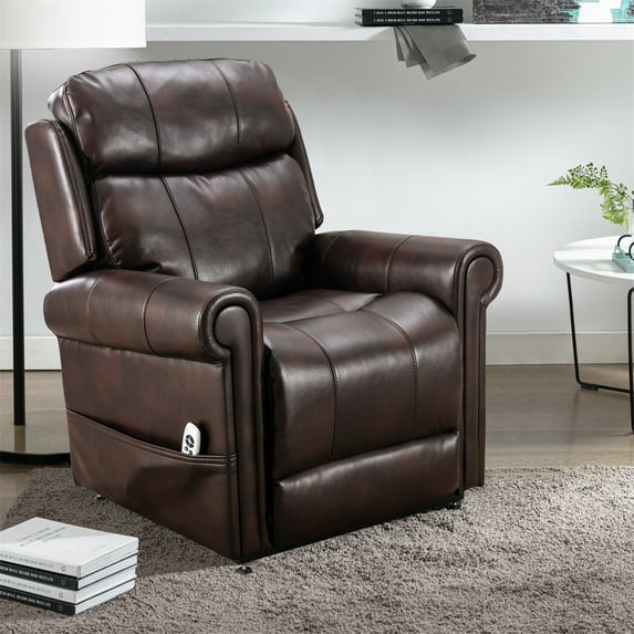 Hero image 0 of Leather Lift Chair with Massage, Single Chair for Reading, Sofa Chair with High Back and Armrest, Comfy Upholstered Sofa Chair for Living Room Bedroom Office, Brown, 0 of 7
