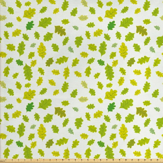 Hero image 0 of Leaves Fabric by the Yard, Autumn Themed Monotone Oak Leaves Botanical Nature Style, Decorative Upholstery Fabric for Sofas and Home Accents, Fern Green Apple Green by Ambesonne, 0 of 4