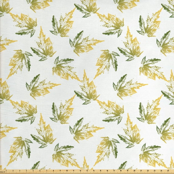 Hero image 0 of Leaves Fabric by the Yard, Floating Autumn Botany Grunge Silhouette of Maple Leaf, Decorative Upholstery Fabric for Sofas and Home Accents, Mustard Olive Green by Ambesonne, 0 of 4