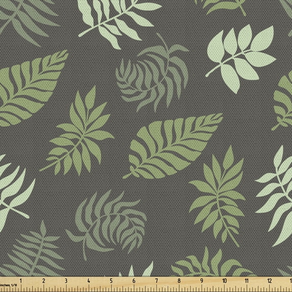 Hero image 0 of Leaves Fabric by the Yard, Palm Tree Elements Foliage Composition Exotic Summer Spring Illustration, Decorative Upholstery Fabric for Sofas and Home Accents, Olive Green Dark Green by Ambesonne, 0 of 5