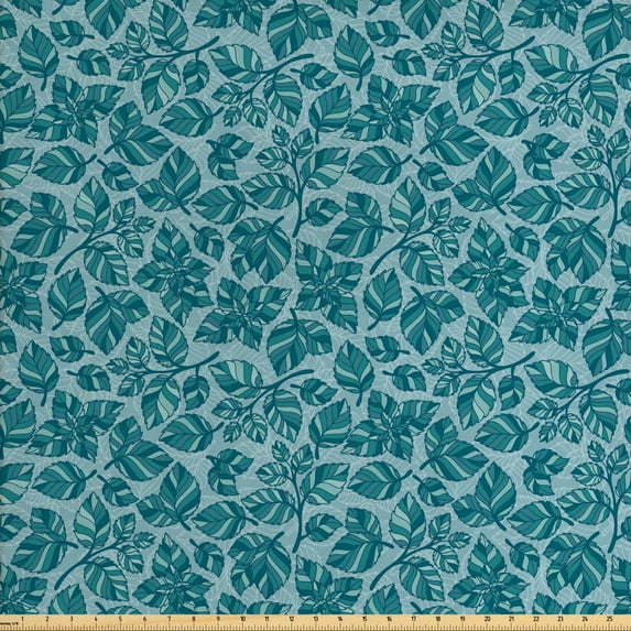 Hero image 0 of Leaves Fabric by the Yard Upholstery, Continuous Pattern of Botanical Themed Leaf, Decorative Fabric for DIY and Home Accents, Petrol Blue Pale Blue by Ambesonne, 0 of 4