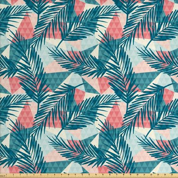 Hero image 0 of Leaves Sofa Upholstery Fabric by the Yard, Polygonal Triangles Geometric Elements Backdrop with Palmate Leaf Motifs, Decorative Fabric for DIY and Home Accents, Dark Teal Multicolor by Ambesonne, 0 of 4