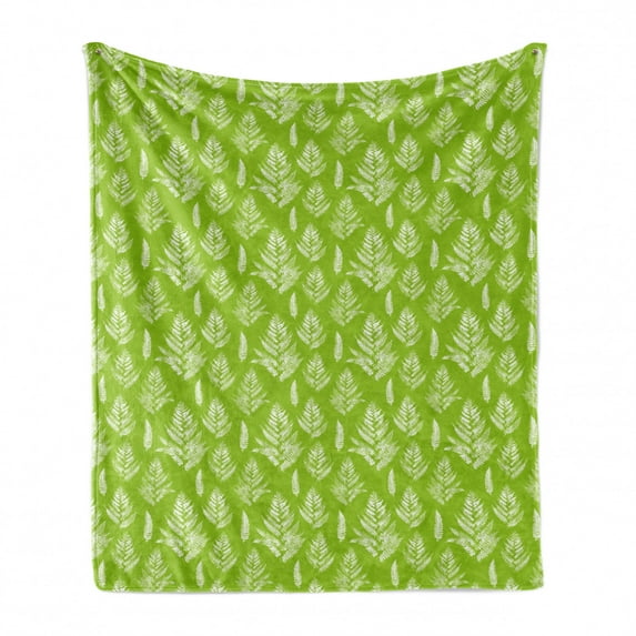 Hero image 0 of Leaves Soft Flannel Fleece Throw Blanket, Simplistic Layout of Fern Leaves with Paint Stains Grunge Monochrome Design, Cozy Plush for Indoor and Outdoor Use, 50" x 70", Lime Green White, by Ambesonne, 0 of 5