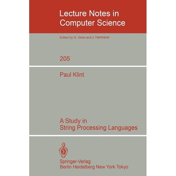 Lecture Notes in Computer Science A Study in String Processing Languages, Book 205, (Paperback)