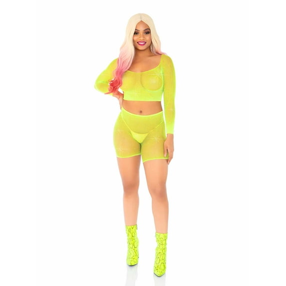 Hero image 0 of Leg Avenue Women's 2 PC Rhinestone Fishnet Top and Shorts, 0 of 5