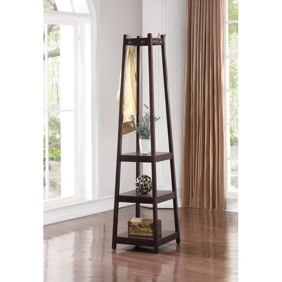 Hero image 0 of Legacy Decor 8 Hook, 3 Tier Shelves Garment Coat Hat Rack Hanger, Wooden Espresso Finish, 0 of 1