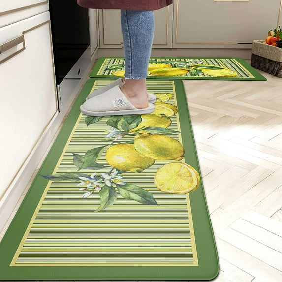 Lemon Kitchen Mat Set of 2 Lemons Anti Fatigue Kitchen Rugs Farmhouse Rustic Comfort Standing Kitchen Floor Mat and Rug for Kitchen Sink Laundry Room Office, 17.3 x 28+17.3 x 47 Inch Yellow Green
