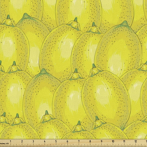 Hero image 0 of Lemons Fabric by the Yard, Hand Drawn Vibrant Colors Ripe Citrus Fruits Kitchen Themed Illustration, Decorative Upholstery Fabric for Sofas and Home Accents, Yellow and Lime Green by Ambesonne, 0 of 5