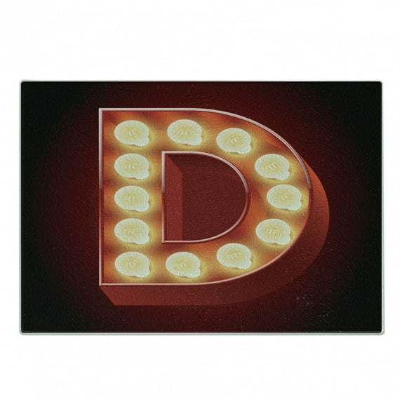 Hero image 0 of Letter D Cutting Board, D with Electricity Theme Old Fashioned Cinema Theater Show, Decorative Tempered Glass Cutting and Serving Board, Small Size, Vermilion Yellow Black, by Ambesonne, 0 of 1