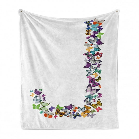 Hero image 0 of Letter J Soft Flannel Fleece Throw Blanket, Alphabet and Nature Tropical Biological Monarch Butterfly of Wings Typeset ABC, Cozy Plush for Indoor and Outdoor Use, 50" x 70", Multicolor, by Ambesonne, 0 of 6