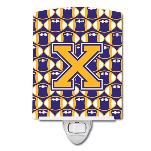 Letter X Football Purple & Gold Ceramic Night Light
