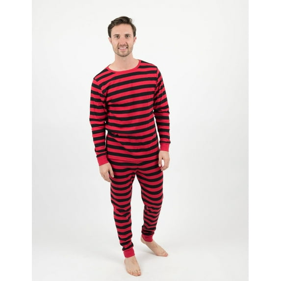 Leveret Mens Two Piece Cotton Pajamas Red & Black Stripes S