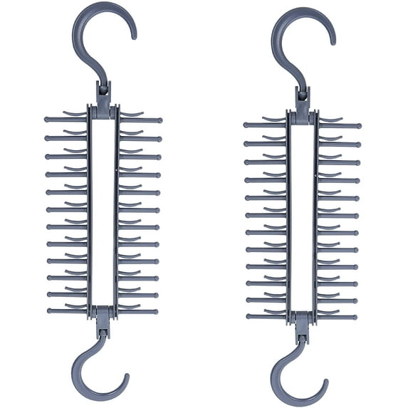 Organizing your ties and other thin, lightweight accessories can be difficult. Stowing them away in your dresser or hanging them on a traditional hanger is rarely an effective strategy because they will either slide off the tie rack or be difficult to locate. This tie holder and belt organizer by Wonder Hanger is specially designed to hold up to 48 neckties of all different types and styles. It has specially designed mini rods to hold individual ties, keeping them securely in place so you don't have to worry about them slipping off. This hanger can be maneuvered 360° so you can easily view and access all of your ties at once. It rotates from front to back without you ever having it to remove it from the closet rod with its clever, dual-hook design. This tie and belt holder is incredibly easy to use. It’s not just a storage solution—it’s also perfect for organization. Organize by color and style so you can easily locate the perfect one to coordinate with your outfit. Place patterned ties on one side of this useful tie organizer for men and solid ties on the opposite side. You can also use this innovative organization tool to hang other lightweight accessories. Try it as a tank top hanger, belt rack, scarf hanger, handbag organizer, and so much more. The tie holder is compact, which makes it ideal for any closet in your home, apartment, dorm room, office, or hotel room. It’s the ultimate space saver. The tie holder is also useful for travel and transportation. Store it in the back of your car or garment bag, then use it when you get to the hotel. The tie holder is made from durable plastic and comes in gray. Hang it in your closet to keep track of all your ties for church, work, or school. At Hampton Direct, we have a vision that families all around the world will know the joy and rewards of a simplified, organized life. Keep your clothes and closet in pristine condition using the Wonder Hanger MAX Tie Hanger.